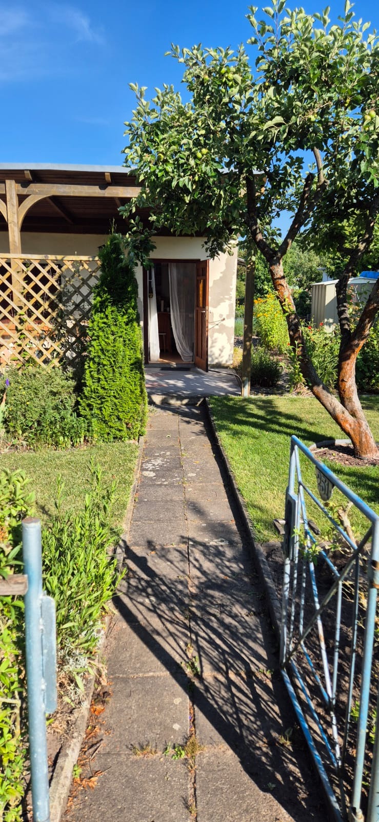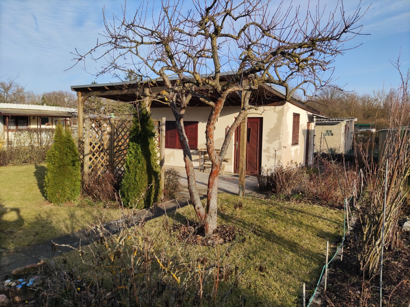 Die Größe des Gartens beträgt ca 300m² . Die Laubengrundfläche ca 30m² + überdachte Terrasse mit 19m² .